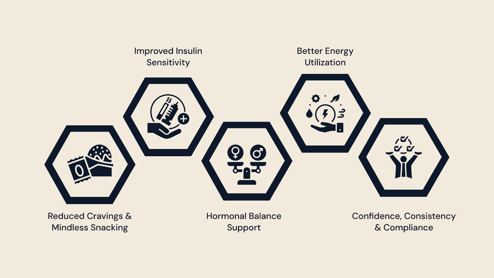 For women, these mechanisms are compelling. Hormonal fluctuations, from stress, menstruation, or menopause, often impact hunger, fat storage, and energy levels. GLP-1 therapy helps restore balance, making it easier to manage weight and maintain progress over time.