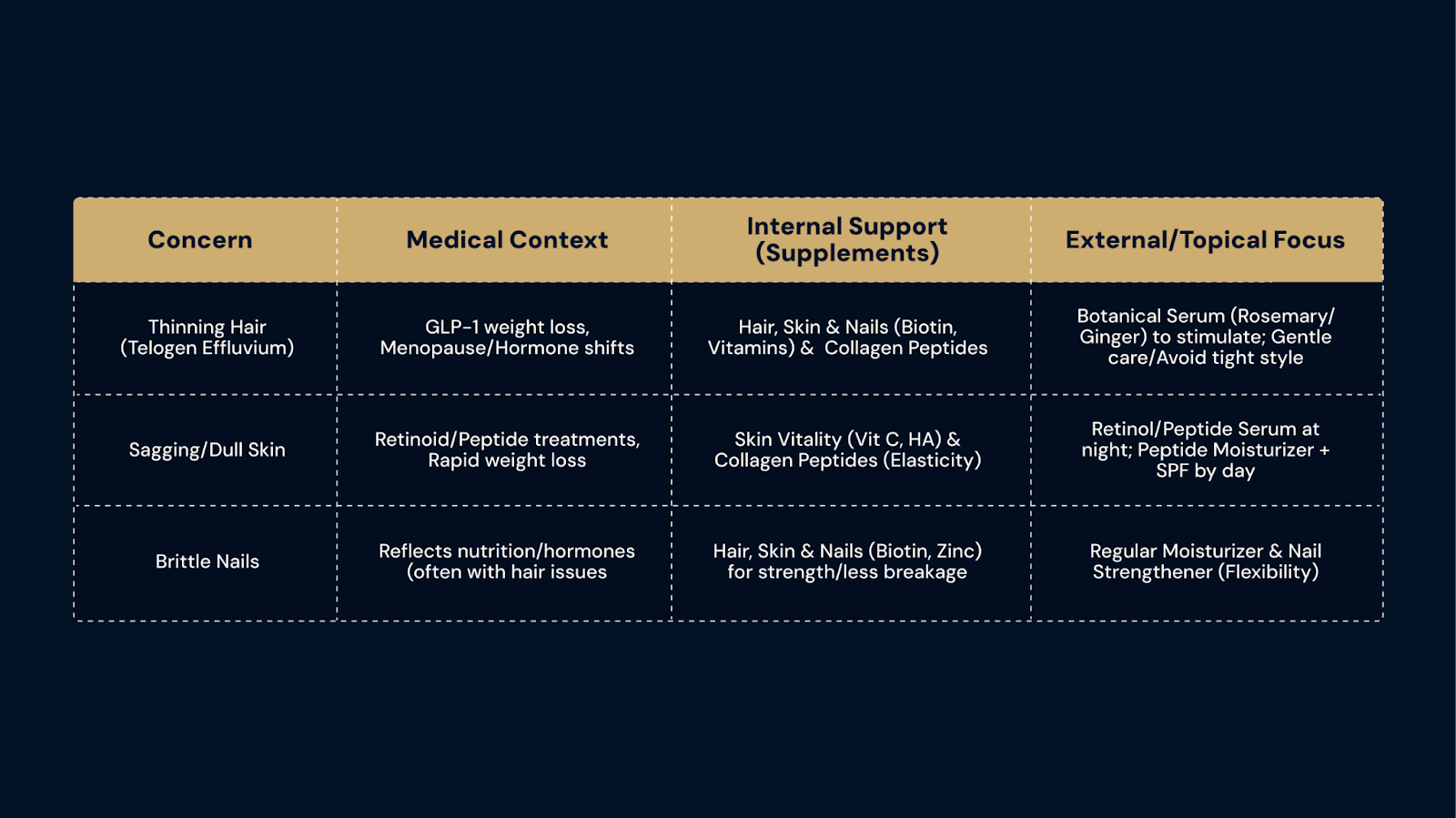Client: “I’m on this new peptide injection for weight loss and considering HRT for my hot flashes. It’s working, but... I’ve heard horror stories about ’Ozempic face’ and hair loss. I just turned 50 – I want to be healthy, but I also want to look good! Help?”